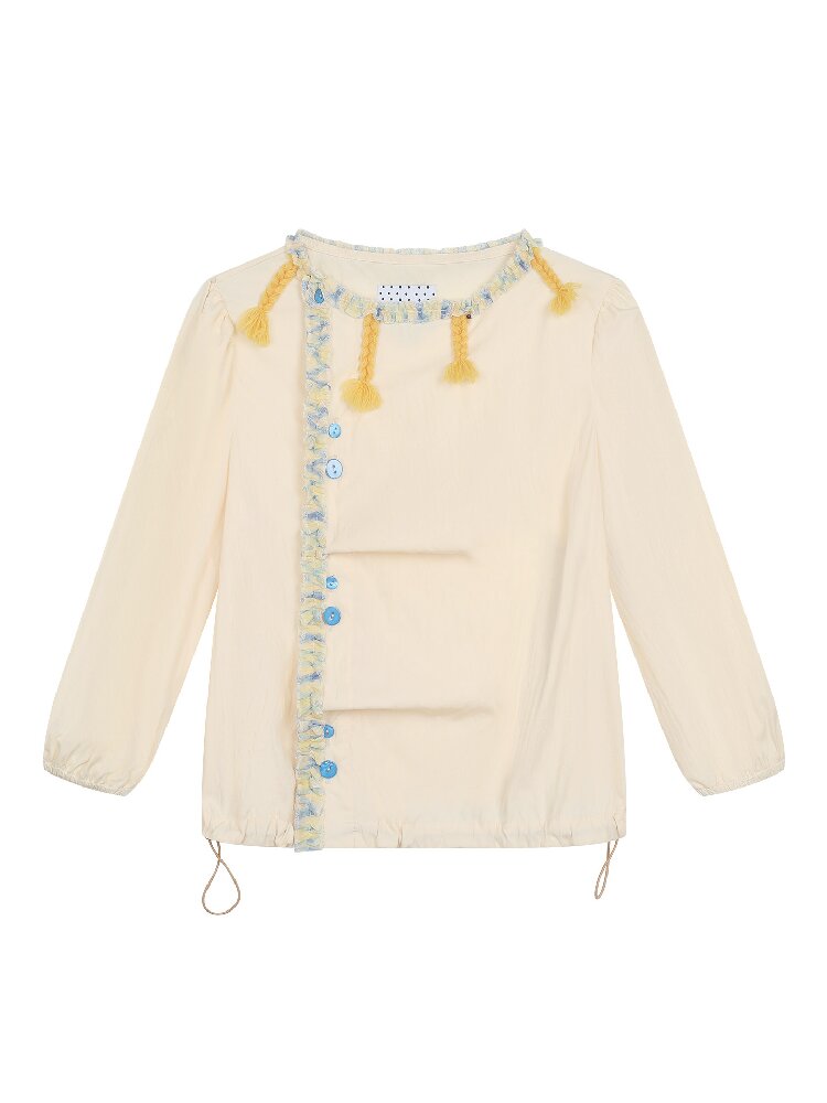 イルカのブラウスと合わせる為にこちらも購入しました。とても可愛いですが紐が細すぎてスカートの重さで切れないか心配ではあります。