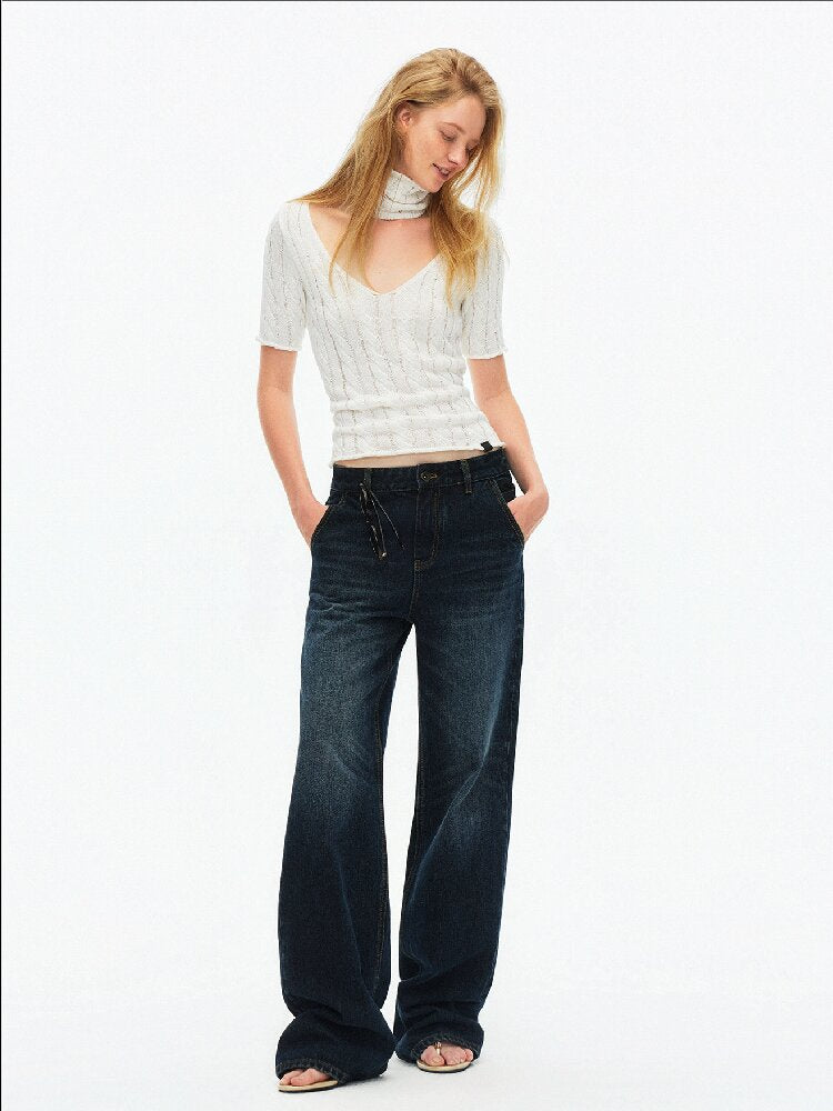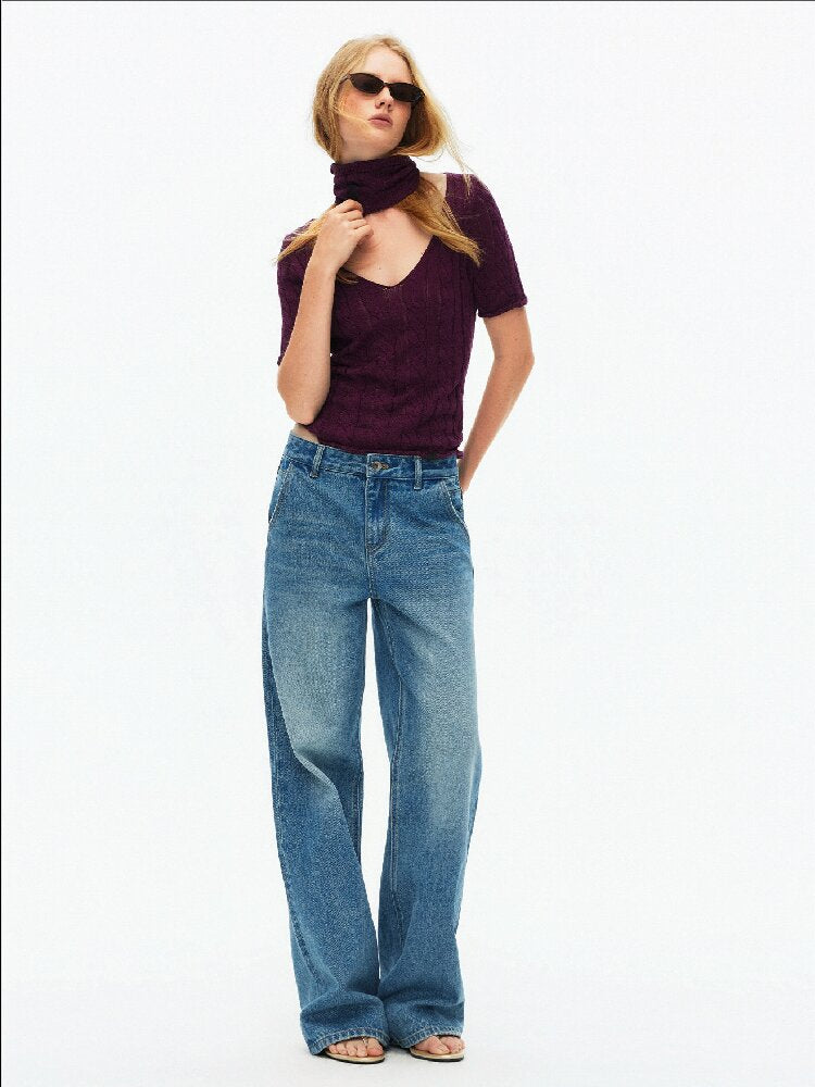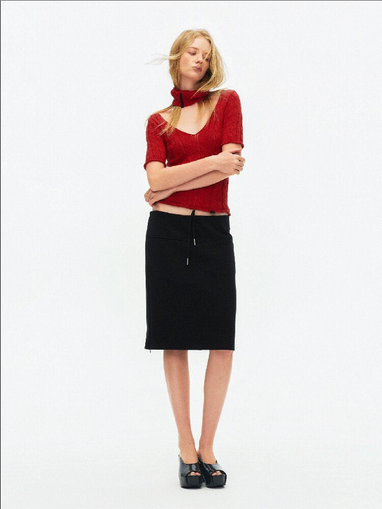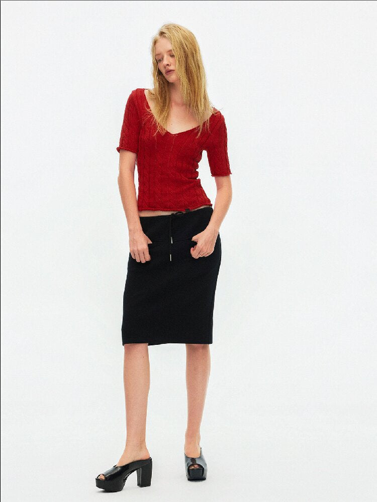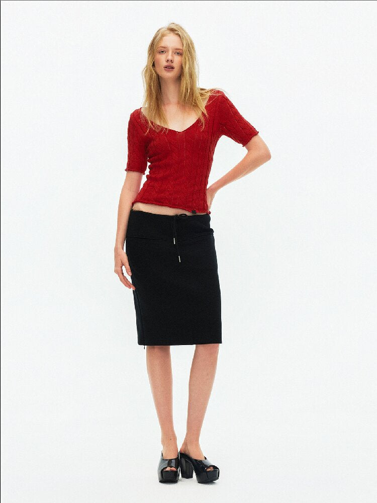 Cut Out Cable V-Neck Knit Top【s0000015928】