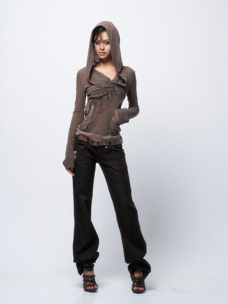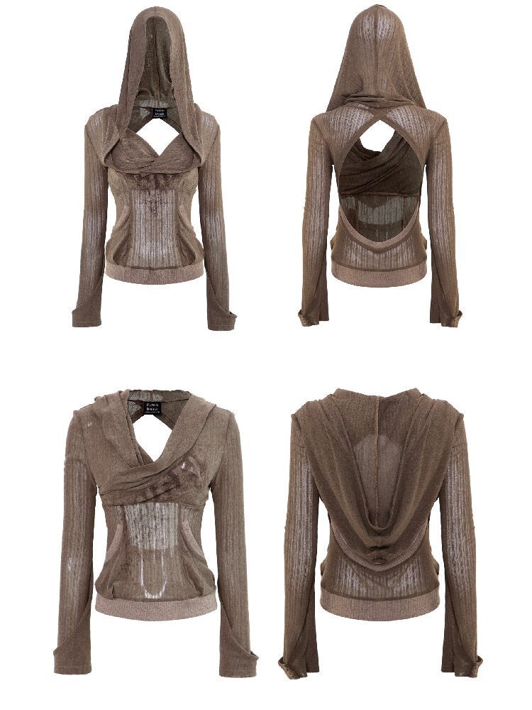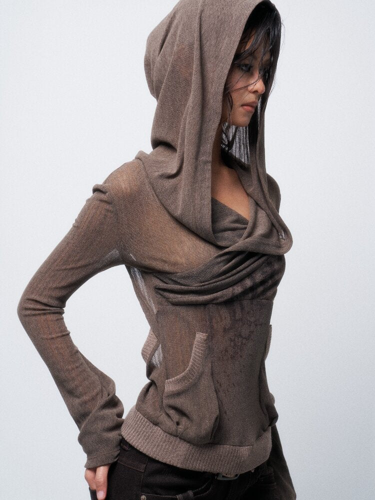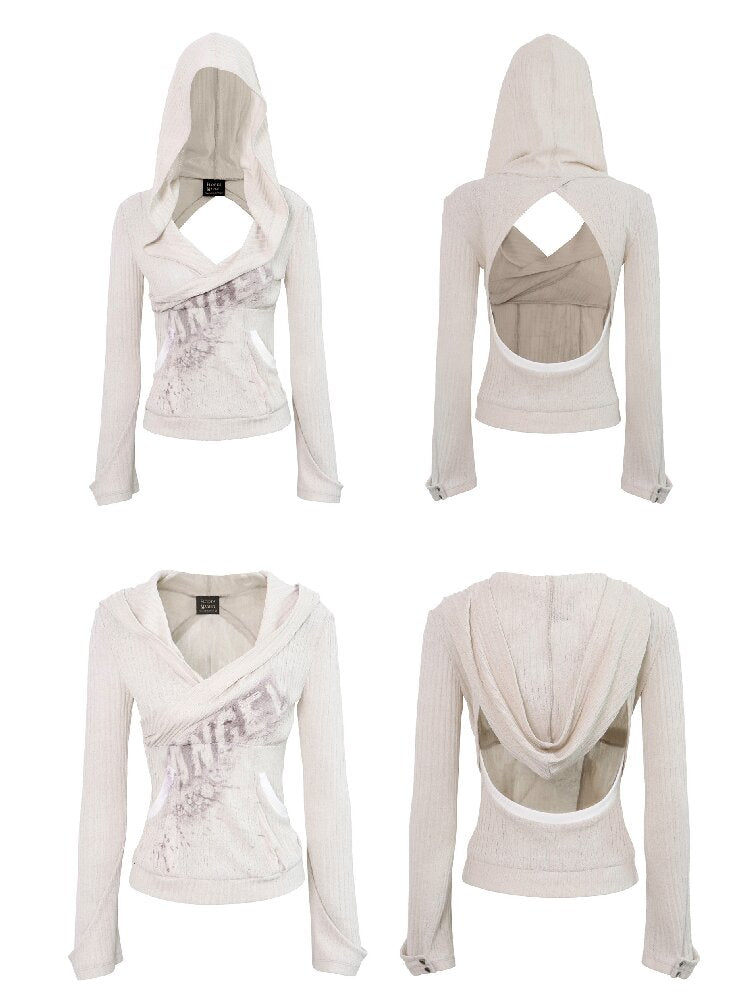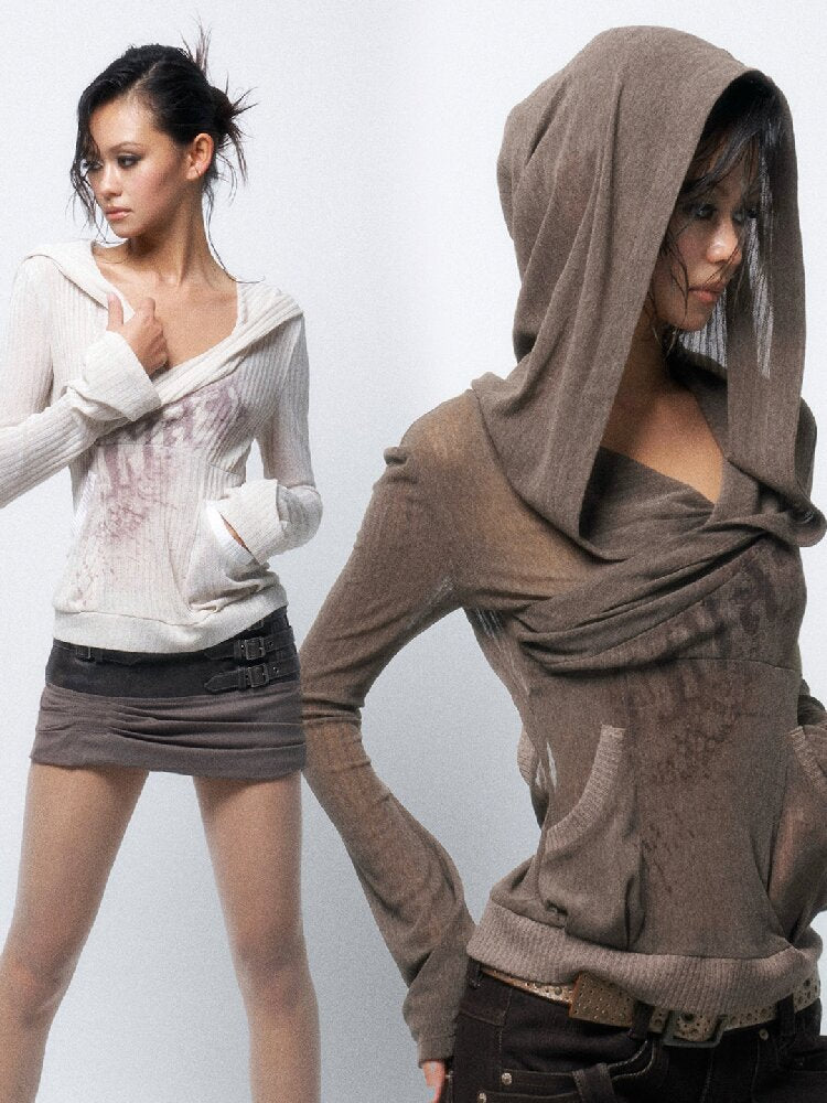 Two-Tone Crossover Print Hooded Top【s0000016062】