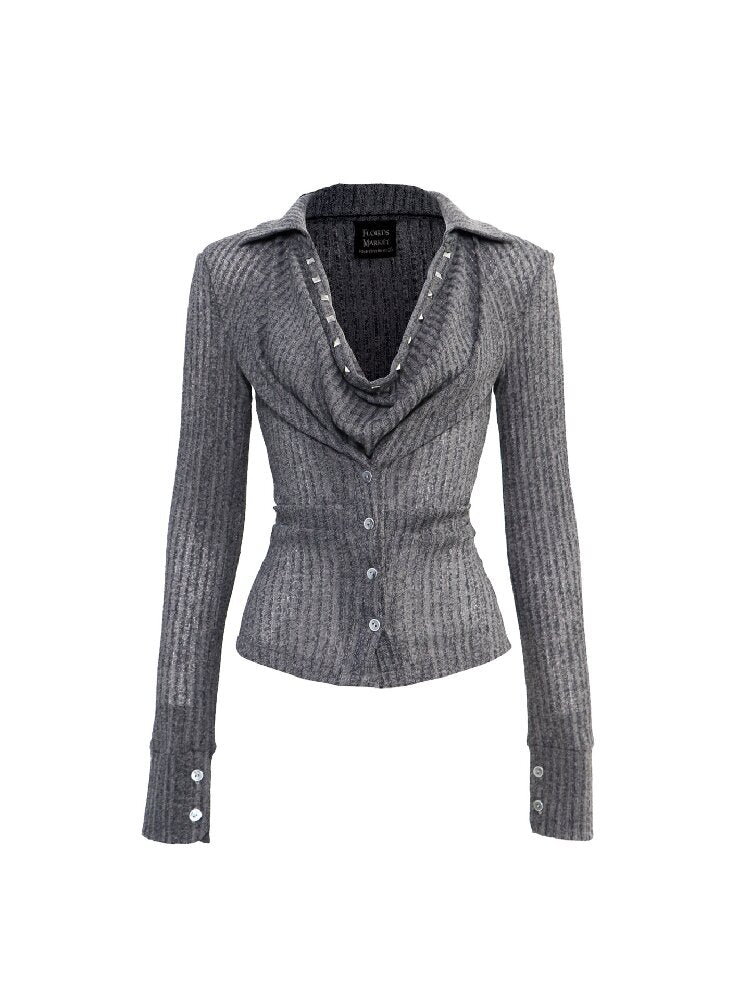 Deep V Swing Neck Knit Slim T-Shirt【s0000016064】